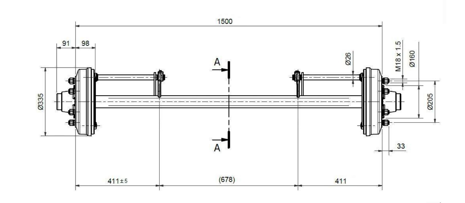 ACHSE FÜR ANHÄNGER MIT BREMSEN (6 SCHRAUBEN) - 4800 kg - 1500 mm