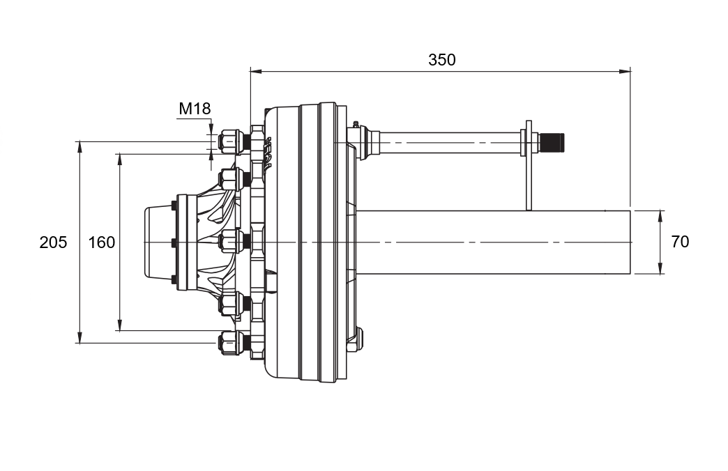 HALBACHSE MIT BREMSEN - 3600 kg (6 SCHRAUBEN) - 250 mm