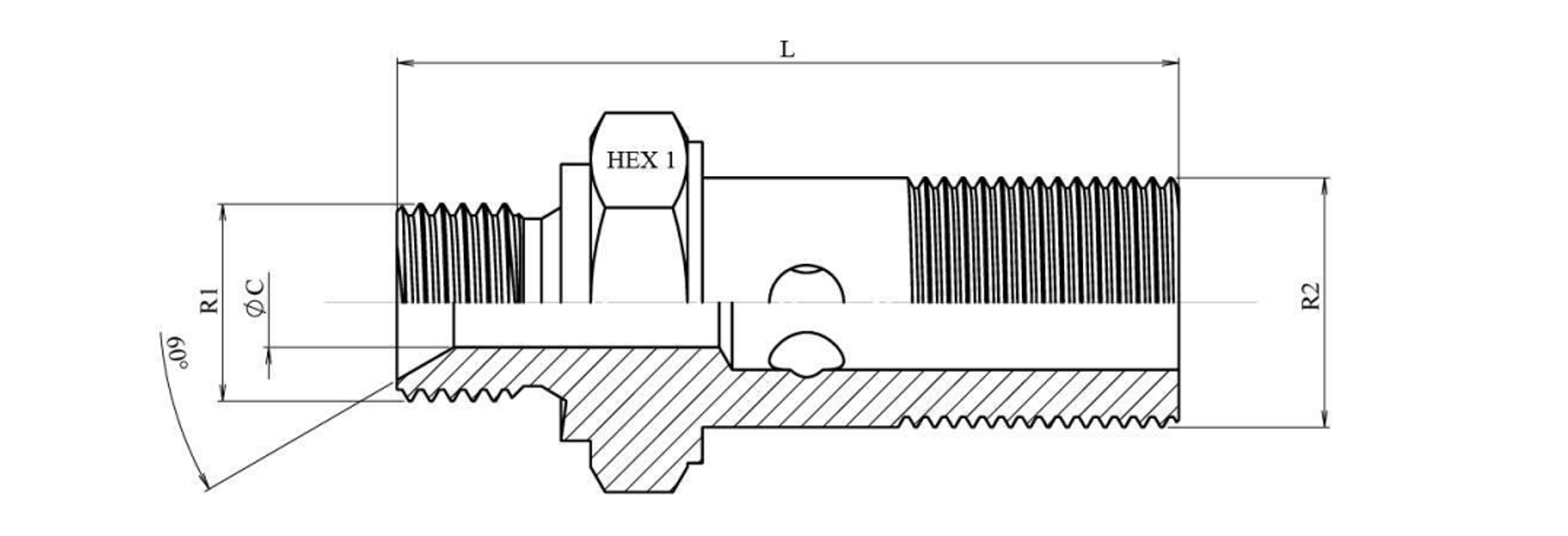 HYDRAULIC BANJO BOLT BSP 3/8 WITH EXTENDED THREAD BSP 1/4