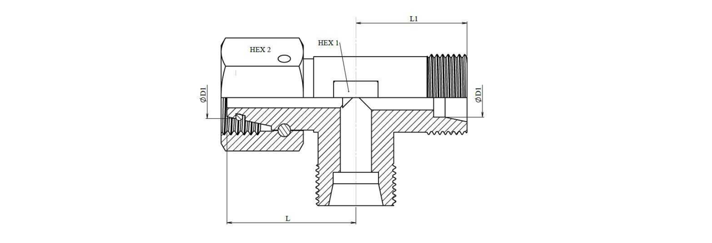 HYDRAULIC TEE S-16 WITH SIDE SWIVEL NUT M24X1,5