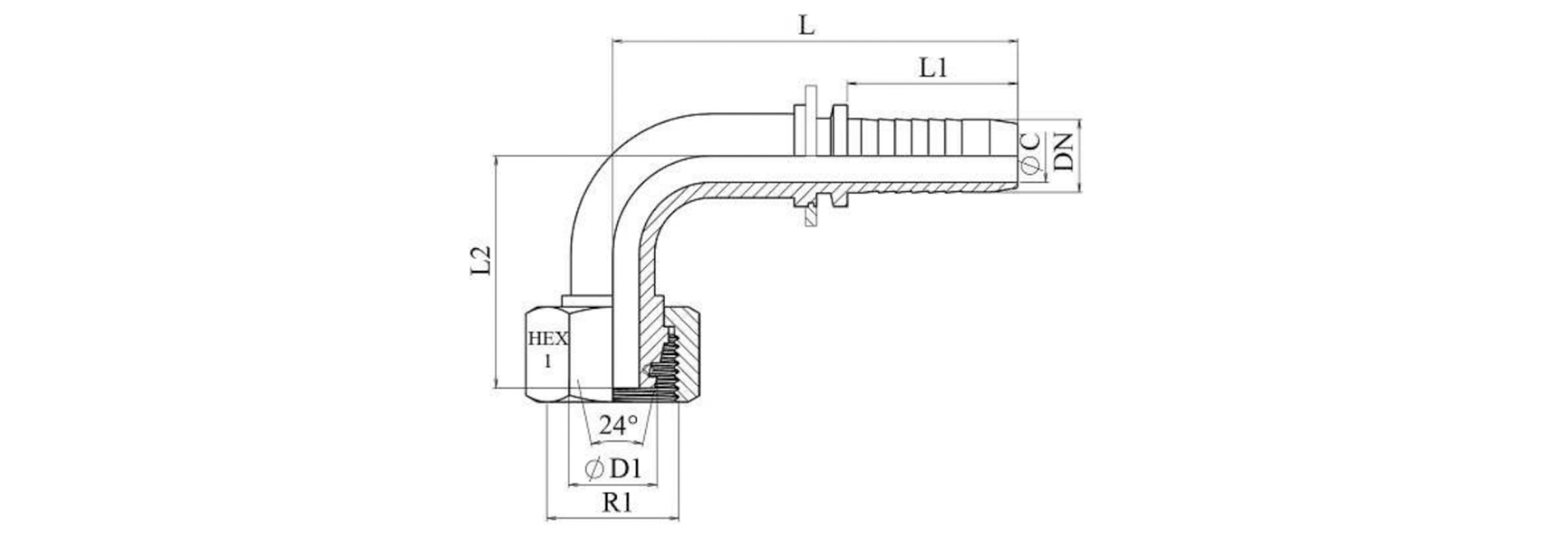 HIDRAVLIČNI PRIKLJUČEK DKOS 25 S ŽENSKI KOLENO 90 DN19-M36x2