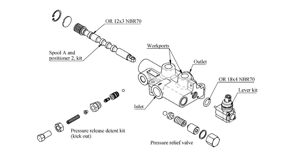 Ventil ima funkcijo s samodejno razbremenitvijo tlaka, ki ob doseženem nastavljenem tlaku (tovarniška nastavitev je 150 bar) samodejno vrne ročico v nevtralni položaj.