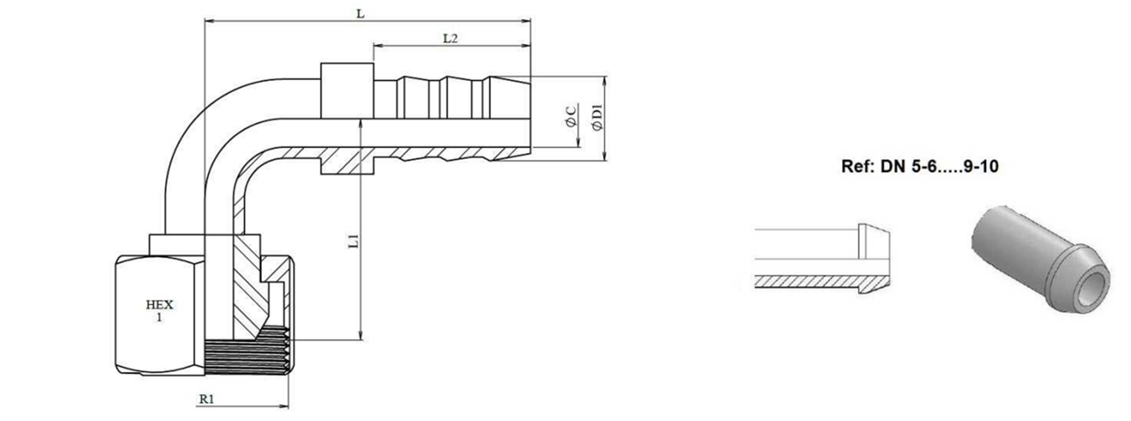 HYDRAULIKANSCHLUSS - WEIBLICH 3/4" KNIE 90°FÜR GUMMISCHLAUCH FI 19 - 20