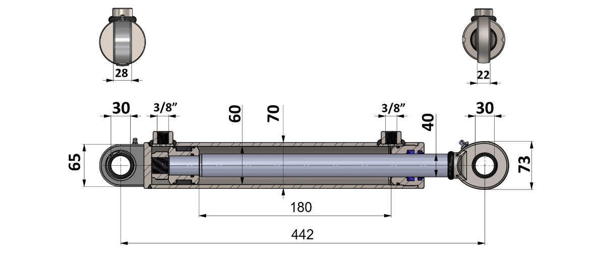| Zugkraft des Zylinders (bei 250 bar): | 3,93 Tonnen |