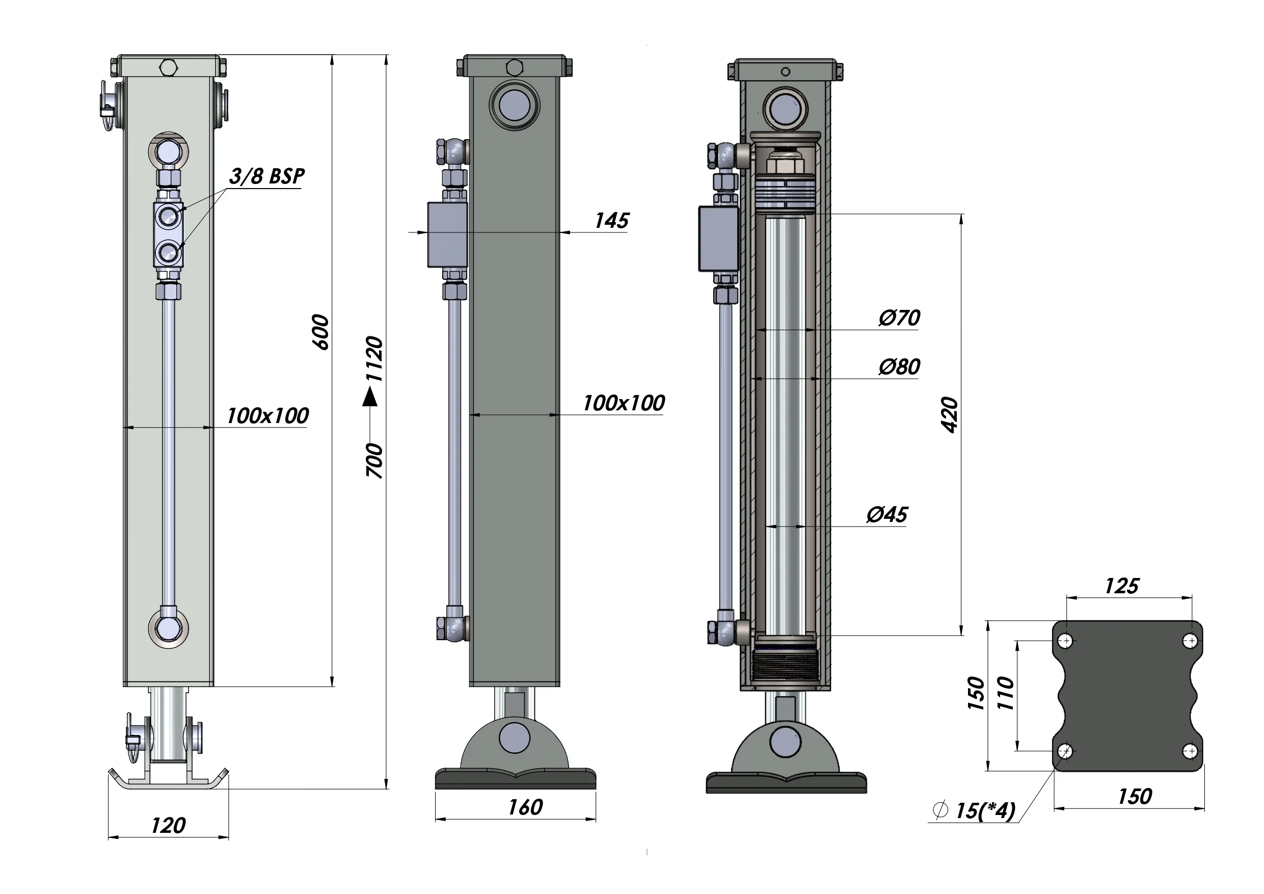 PIEDINO DI SUPPORTO IDRAULICO A DOPPIO EFFETTO (100x100x700 mm) - CORSA 420 mm - 5.000 kg