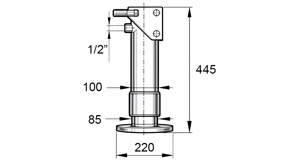 GIREVOLE PIEDINO DI SUPPORTO IDRAULICO A DOPPIO EFFETTO (Φ100x445 mm) - CORSA 250 mm - 6.000 kg