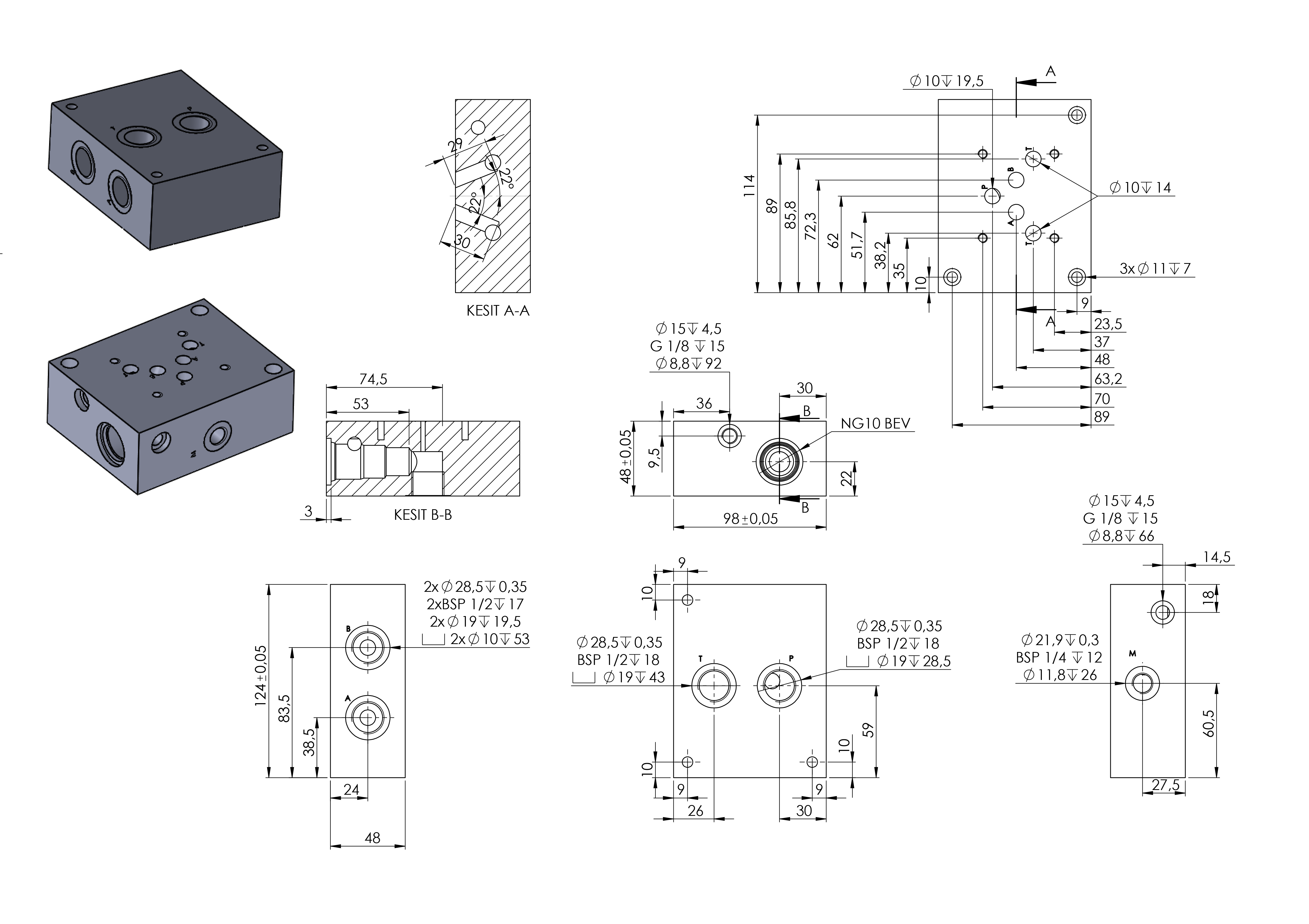 Die CETOP NG10-1 Unterplatte ist eine standardisierte Montageplatte, die für die Installation von Hydraulikventilen der Größe NG10 (CETOP 5) gemäß der Norm ISO 4401-05 ausgelegt ist. Sie ermöglicht eine einfache, schnelle und zuverlässige Verbindung des Ventils mit dem Hydrauliksystem.