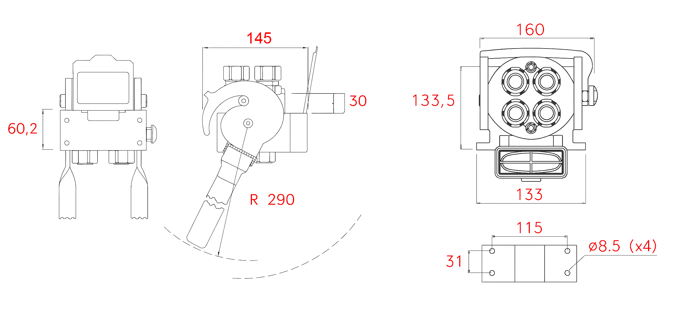 - Poljoprivredni, građevinski i šumarski strojevi: za priključivanje radnih priključaka (npr. plugovi, hidraulične ruke, kliješta …) koji zahtijevaju više hidrauličnih vodova.