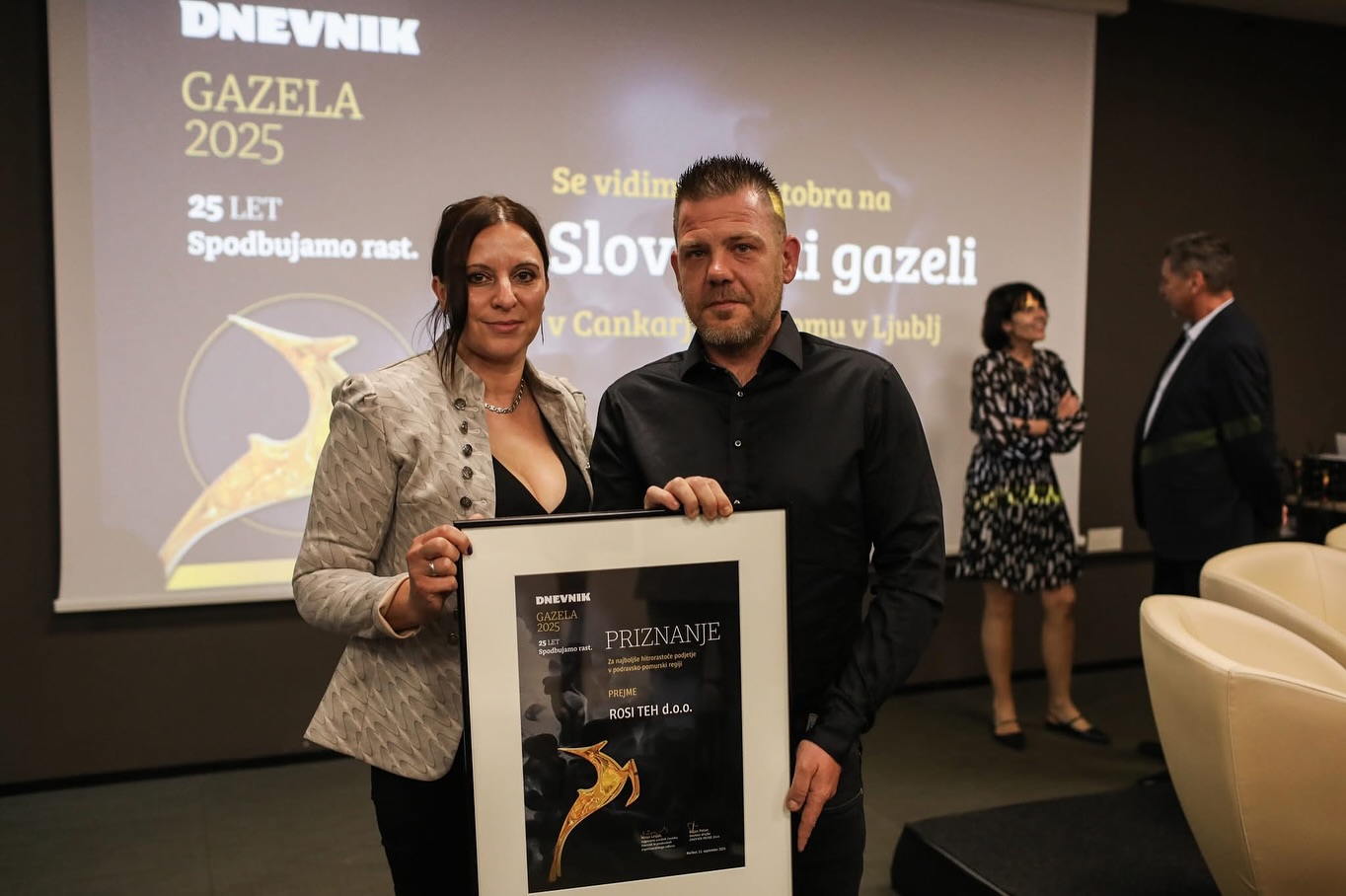 Godine 2025. proglašeni smo najbrže rastućim poduzećem u regiji Podravje–Pomurje. Ovo priznanje odražava strateško vodstvo, predan tim te povjerenje naših partnera, dobavljača i kupaca. Za nagradu Gazela se ne može prijaviti – dobitnike bira stručni žiri koji ocjenjuje različite aspekte poslovanja. Prema metodologiji komisije, naša konkurentska prednost je u jasnom fokusu na ciljane kupce čije potrebe razumijemo i ispunjavamo bolje od konkurencije.